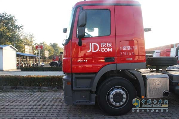 奔驰卡车,据介绍,此次京东物流为备战双十一,一次性从北京银汉华星订购9辆奔驰Actros408马力6X2