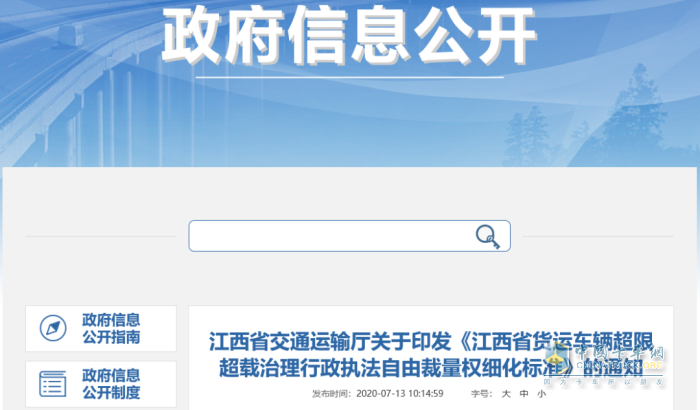 近日,江西省交通运输厅印发《江西省货运车辆超限超载治理行政执法自由裁量权细化标准》(简称《标准》),从具体违法行为、违反条款、处罚依据、违法程度、情节及后果和裁量标准等方面进行了细化要求,明确了具体违法行为的处罚依据和裁量标准。