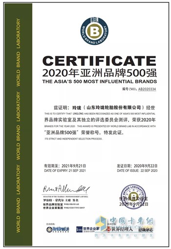 2020年《亚洲品牌500强》公布,玲珑轮胎荣登榜单