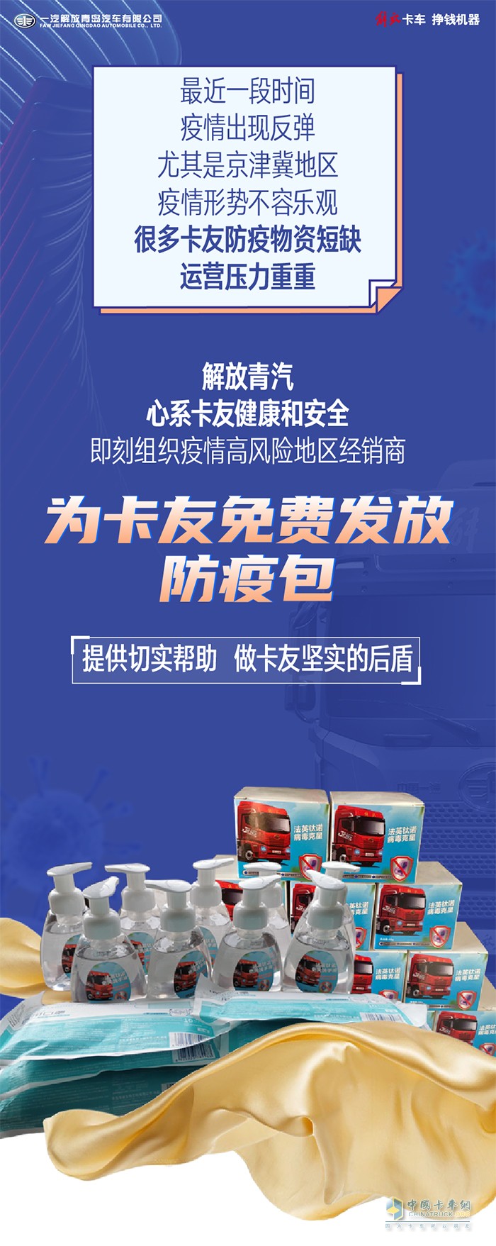 免费赠送“防疫包”,解放青汽做卡友最坚实的后盾!