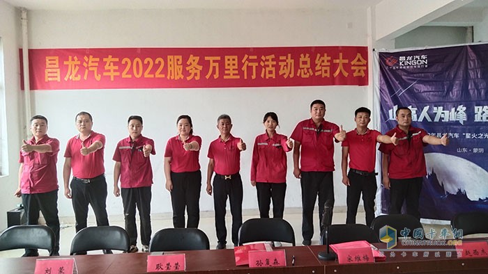 2022年7月12日,昌龙汽车召开2022的“星火之光”服务万里行活动总结大会。本年度的“星火之光”服务万里行活动,昌龙汽车的服务团队由孙复森董事长亲自带队,从蒙阴出发,途径江苏、安徽、江西、湖南、广西、云南、四川、重庆、湖北、河南等十多个省份18个地区,用时15天,行程11870公里。旅途中,服务团队成员深入客户群体,倾听客户声音,为客户排忧解难,以行动贯彻昌龙汽车“用心服务,服务用心,星驰赶往,立竿见影”的服务宗旨。