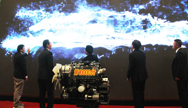 潍柴动力副总裁冯刚(右)与江淮汽车集团领导为第10000台WP3发动机揭幕